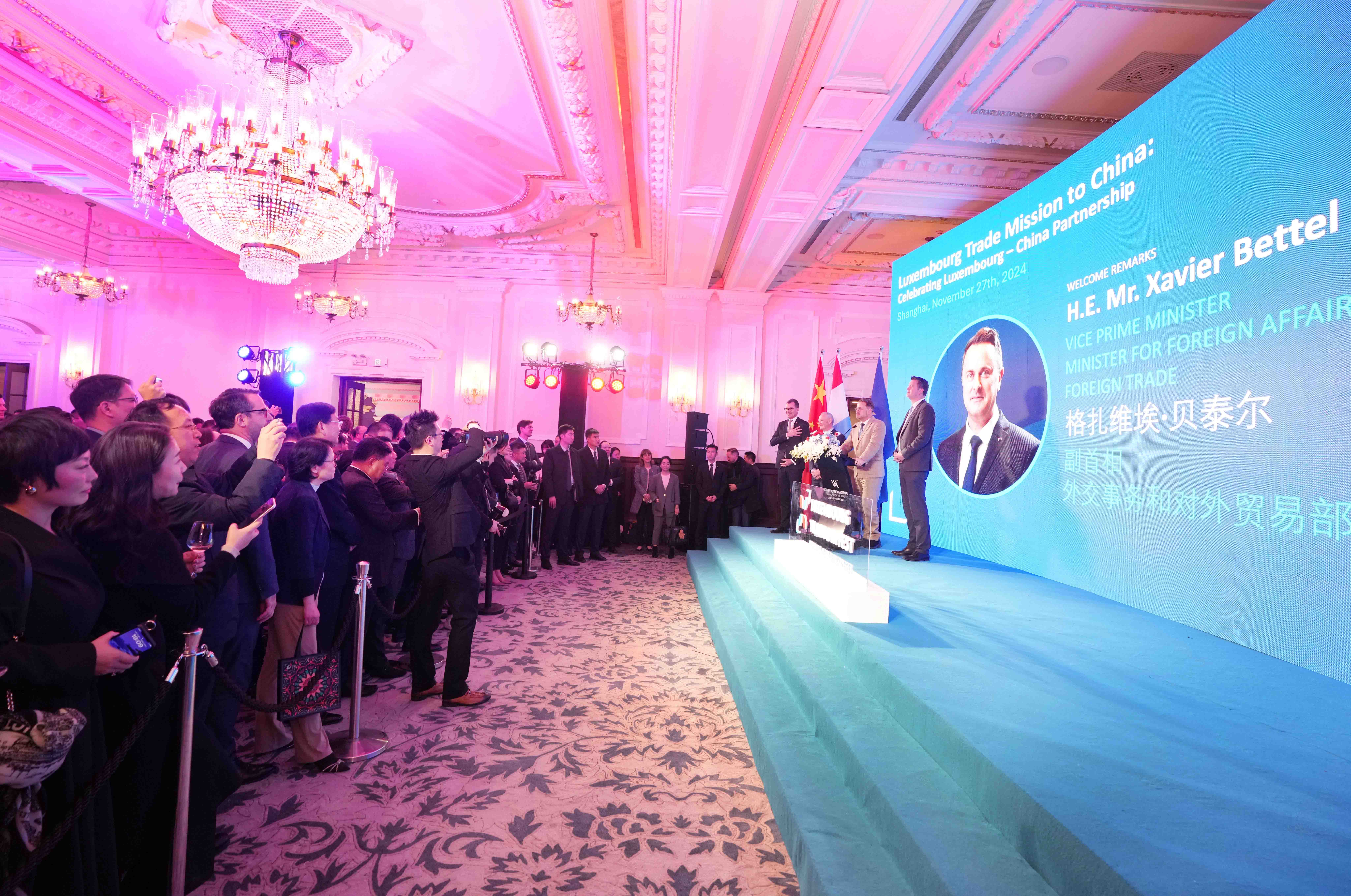 11月27日,盧森堡-中國(上海)商務(wù)合作論壇在上海舉行。盧森堡副首相兼外交、外貿(mào)大臣格扎維?!へ愄枺R森堡經(jīng)濟(jì)、中小企業(yè)、能源和旅游大臣萊克斯·德勒斯,駐華大使盧睿朗等出席。中豫航空集團(tuán)黨委書記、董事長張明超受邀參加,并在盧森堡大公國商貿(mào)團(tuán)訪華官方招待會上與貝泰爾、盧睿朗等就促進(jìn)鄭盧“空中絲綢之路”建設(shè)溝通交流。