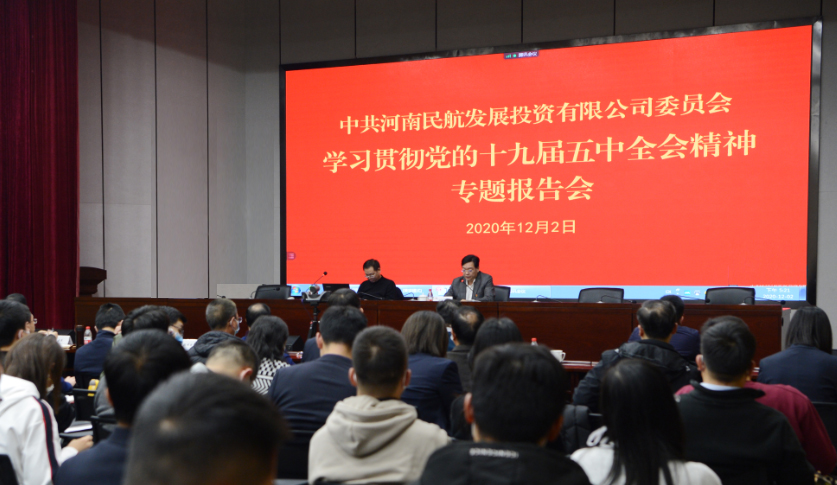 為認(rèn)真學(xué)習(xí)貫徹黨的十九屆五中全會(huì)精神,落實(shí)黨中央、省委省政府關(guān)于學(xué)習(xí)宣傳貫徹黨的十九屆五中全會(huì)精神的工作部署,使廣大黨員切實(shí)把握十九屆五中全會(huì)精神實(shí)質(zhì),12月2日下午,河南航投黨委邀請(qǐng)河南省社會(huì)科學(xué)院院長(zhǎng)谷建全,舉辦學(xué)習(xí)貫徹黨的十九屆五中全會(huì)精神專(zhuān)題報(bào)告會(huì),會(huì)議由公司黨委書(shū)記、董事長(zhǎng)張明超主持。