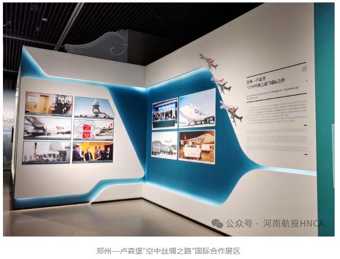 這一主題展板上,精選了10張圖片記錄豫盧共建“空中絲路”的關(guān)鍵事件。既有2014年河南航投與盧森堡貨航在鄭州簽署股權(quán)合作協(xié)議、“鄭州號(hào)”巨無(wú)霸貨機(jī)首次抵鄭的起始節(jié)點(diǎn);也有這條絲路承運(yùn)河南省向盧方捐贈(zèng)的抗疫物資、鄭盧直飛客航首批旅客抵達(dá)的溫暖瞬間;還有盧森堡貨航在鄭州加注可持續(xù)航空燃料、鄭盧航線貨運(yùn)量突破100萬(wàn)噸的喜慶時(shí)刻,精彩講述豫盧雙方在“一帶一路”框架下相融互促,從硬聯(lián)通、軟聯(lián)通到心聯(lián)通的生動(dòng)實(shí)踐。