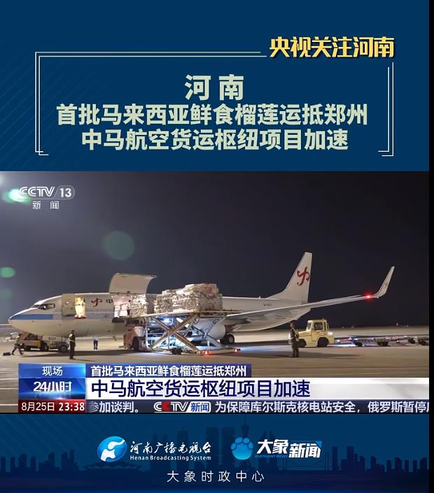 大象新聞客戶端 | 【央視關(guān)注河南】首批馬來西亞鮮食榴蓮運(yùn)抵鄭州
