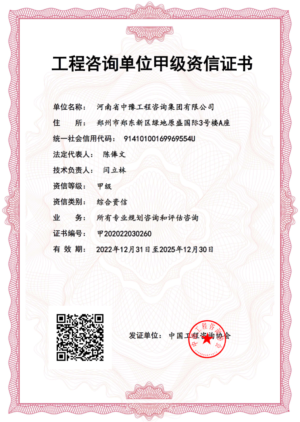 工程咨詢資信等級是衡量工程咨詢企業(yè)綜合實力的重要標(biāo)志,也是工程咨詢企業(yè)發(fā)展的重要基石。甲級綜合資信可以作為所有專業(yè)規(guī)劃咨詢和評估咨詢業(yè)務(wù)能力的參考。目前,中豫咨詢集團已獲得工程咨詢單位甲級綜合資信和7個甲級專業(yè)資信,企業(yè)綜合實力邁上新臺階。